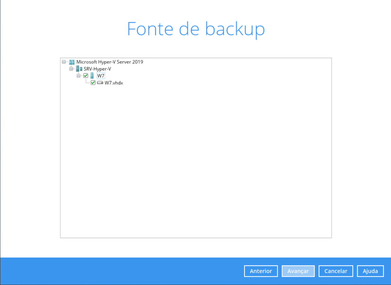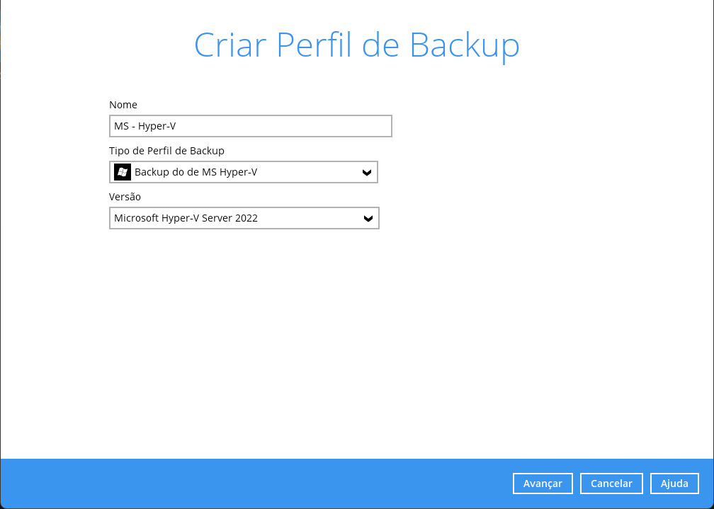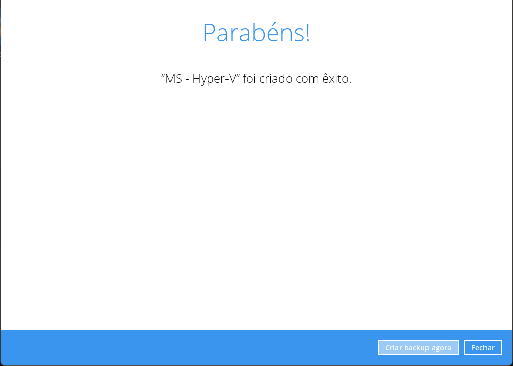 Note: O Cloud Backup detectará automaticamente a versão do Hyper-V instalada no host.